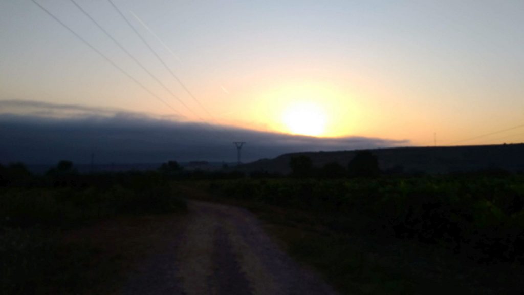 Na das war mal eine Leistung, noch vor dem Sonnenaufgang sind wir unterwegs schon mit Kaffee intus. Das Gehen beim Sonnenaufgang erinnert mich jedes Mal an die Fußpilgerfahrten zu unserem nationalen Mariensanktuarium.