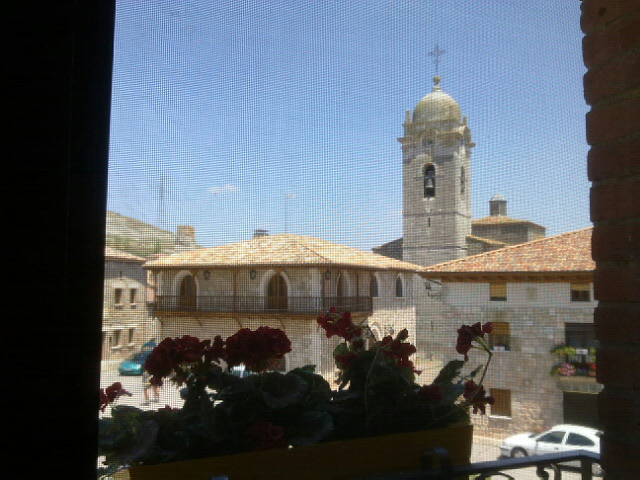 Für sie ist wichtig, dass sie unten schlafen kann, also schwenke ich mich auf das obere Stockbett und ziehe meine Socken an. Na sieh mal einer an – erster Tag, erste Blase. Die werde ich nach der Dusche schön durchstechen, desinfizieren und mit einem Pflaster sicher verpacken. Durch das nur mit Fliegengitter ausgestattete Fenster sieht man direkt auf die kleine Kirche. Viel mehr als die Herberge und die Kirche hat diese Ortschaft auch nicht zu bieten. Es gibt nicht mal einen Laden – es kommt einier auf Rädern in der Früh