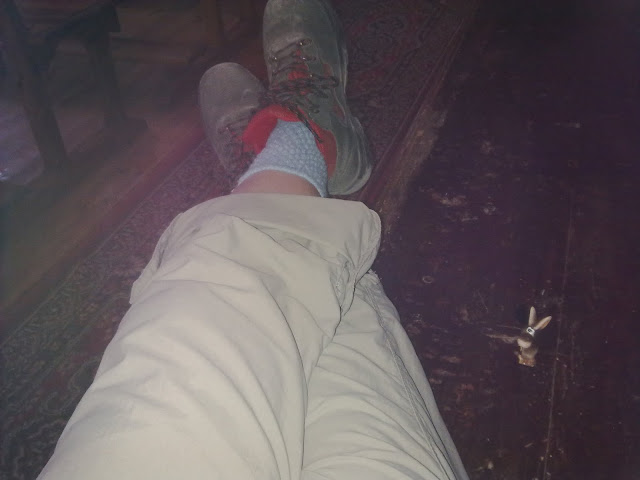 Ich habe nun auch einen Esel dabei, wenn auch so kleinen. Er schaut mich mit seinen großen Augen und schielt dabei, so dass ich immer lächeln muss. Er strahlt auch gewisse Gelassenheit, Robustheit und Demut aus, immerhin ist Jesus auch auf einem Esel nach Jerusalem eingezogen. Ich mache ein Foto von meinen verstaubten Wanderschuhen und meinem kleinen Begleiter. Später werde ich über das erste Pilgerfoto schmunzeln, auf dem meine Hosenbeine noch schön, fast nach Maß hochgekrempelt sind.